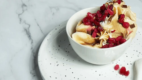 Naleśniki możesz podawać np. z jogurtem z kawałkami brzoskwini.
