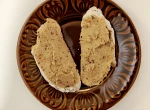 Bagietka z pastą z fasoli i jabłek z dodatkiem suszonych śliwek i goździków.