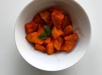 Bataty umyj, wyszoruj i pokrój w kostkę 2x2 cm, przełóż do miski.