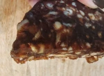 Orzechy i migdały mielimy na proszek. Daktyle i rodzynki blendujemy – jeżeli sprzęt ma problem ze zmiksowaniem dodajemy ok 2 łyżek wody. Wszystko razem łączymy i dodajemy 2 łyżeczki kakao. Zagniatamy ciasto i dzielimy na kawałki, z których formujemy batoniki ( do wygładzenia boków najlepiej użyć noża – masa jest kleista więc dobrze współpracuje). Układamy batoniki na folii spożywczej i wkładamy do lodówki na ok 2 godziny.