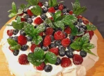 - Na masę śmietanową wyłóż mus owocowy, następnie przykryj od góry drugą bezą.