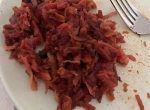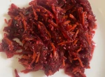 Buraczki umyj i ugotuj w osolonej wodzie. Wystudzone buraki obierz, a następnie zetrzyj na tarce (najlepiej na mniejszych oczkach).