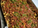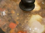 - Do podsmażonego mięsa dodaj podduszoną cebulę z papryką, pomidory z puszki, puszkę odsączonej czerwonej fasoli i kukurydzy konserwowej .