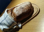 W trakcie wyrastania ciasto raz odgazować poprzez składanie. Wyrośnięte ciasto ponownie zagnieść, uformować bochenek, przełożyć go do obsypanego mąką koszyka. Koszyk nakryć ściereczką i odstawić do ponownego wyrastania na ok 2 godziny - chleb powinien przynajmniej dwukrotnie zwiększyć rozmiar. Nagrzać piekarnik z kamieniem do chleba lub blachą w środku do 230 stopni Celsjusza z termoobiegiem (250 stopni Celsjusza góra + dół).