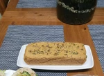 Orzechy siekamy i dorzucamy do powstałej masy. Mieszamy do połączenia i przekładamy do keksówki wyłożonej papierem do pieczenia lub wysmarowanej masłem. Wierzch posypujemy pestkami dyni.
