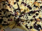 - Ciasto przelej do formy, wyłożonej papierem do pieczenia. Na wierzchu ułóż jagody.