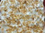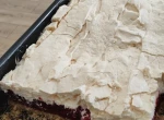 Kiedy uzyskasz sztywną pianę, dodaj mąkę i dokładnie wymieszaj. Wyłóż ją na papier do pieczenia w wymiarach zbliżonych do upieczonego wcześniej ciasta. Bezę piecz w 140 stopniach przez ok. 60 min.