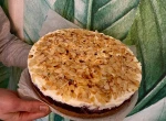 Blaszkę o wymiarach ok. 36x24 cm wyłóż papierem do pieczenia i wylep dno ciastem. Wyrównaj i ponakłuwaj widelcem. Piecz ok. 15–20 min w piekarniku nagrzanym do 180 stopni do zrumienienia. Upieczone ciasto odstaw.