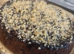40g daktyli zalej wodą i chwilę podgotuj, żeby zmiękły. Odcedź i zblenduj z 1 łyżeczką kakao, 35g zmielonych migdałów i pozostałym olejem kokosowym (około łyżki). Jeśli masa jest bardzo gęsta dolej wody lub mleka roślinnego. Posmaruj całe ciasto i udekoruj orzechami i wiórkami kokosowymi.