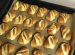 Ułóż na blaszce wyłożonej papierem do pieczenia. Pokrój na około 4 - 5 cm kawałki. Odstaw do wyrośnięcia na kilka minut.