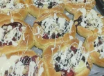 Rozwałkuj ciasto na duży prostokąt około 30 x 40 cm. Podziel go na 4 paski. Z brzegu paska nałóż nadzienie i zwiń długi rulonik z ciasta (zaczynając od dłuższego boku prostokąta), na końcu zlep ciasto na całej długości łączenia. Powtórz z resztą ciasta.