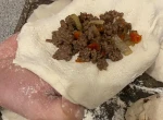 Pa blacie posypanym mąką rozwałkuj dość cienko ciasto, wykrajaj większe kółka. Na każde kółko połóż łyżkę farszu, zamykaj jak klasyczne pierogi.