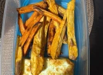 Warzywa obierz, pokrój w słupki. Włóż do miski i polej olejem rzepakowym. Przypraw słodką i ostrą papryką, tymiankiem, pieprzem i wymieszaj. Umieść na blasze wyłożonej papierem do pieczenia i zapiekaj ok. 20-30 minut w 180 stopniach (co jakiś czas sprawdzaj stopień wypieczenia frytek - powinny być złote i zachować chrupkość). dip chrzanowy-jogurt wymieszaj z chrzanem, dodaj posiekany koperek, sok z cytryny, dopraw solą i pieprzem.