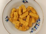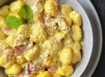 Wyrabiaj ciasto do połączenia wszystkich składników. Następnie uformuj wałek o średnicy ok. 1,5 cm i pokrój go na małe kluseczki. Każdy kluseczek przyciśnij widelcem w celu odciśnięcia rowków.