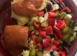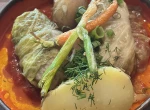 Gołąbki z boczkiem, mieszanym mięsem mielonym w sosie z wywaru z jagnięciny.