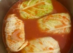 Gołąbki układaj w naczyniu żaroodpornym, zalej bulionem i przykryj.