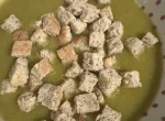 Cebulę drobno posiekać wrzucić na rozgrzaną patelnię z odrobiną klarowanego masła wrzucić cebulę, zeszklić. Dodać pokrojony w plasterki czosnek. Podsmażyć. Na patelnię wlać dwie chochle bulionu, zamieszać, dodać do pozostałego bulionu. Do gotującego się wywaru wrzucić oczyszczone i podzielone na mniejsze kawałki różyczki brokuła oraz groszek, gotować do miękkości. Dodać serek pokrojony w kostkę, gotować do momentu aż się rozpuści. Dodać zioła i przyprawy. Zmiksować zupę na gładki krem po czym dodać śmietankę i ponownie zagotować. Podawać z grzanką lub groszkiem ptysiowym.