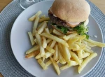 Podajemy z ulubioną bułką do hamburgerów z dodatkiem warzyw np. sałata, pomidor, oliwki, ogórek, awokado.