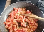 - Gdy jajko zacznie się ścinać, dodaj pomidory pokrojone w kostkę i posiekaną dymkę. Smaż jeszcze 1–2 minuty, a następnie przełóż na talerz i udekoruj kiełkami.