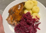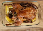 - Kaczkę przekładam na blachę, i piekę 1,5 h w 180 stopniach, od czasu do czasu podlewając tłuszczem, który się z niej wytopi.