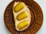 Pastę robimy dzień wcześniej dodając czosnek oliwę koperek. Śniadanie. Dwie kromki chleba smarujemy humusem (bez masla). Na to dajemy pokrojonego w plastry ogórka kiszonego. Dodatkowo w ćwiartki kroimy rzodkiewki i przegryzamy podczas posiłku. To śniadanie jest sycace i zdrowe. Polecam