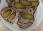 Kanapki z humorem cieciorki i ogórkiem kiszonym oraz rzodkiewki.