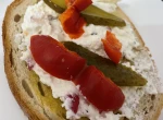 Twarożek wymieszać z jogurtem. Umyć warzywa.
