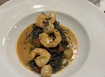 Przygotowuję bulion szafranowy - do garnka wlewam wodę, wkładam obrane warzywa (pietrzuszka, marchewka, seler), wlewam sos rybny i sos sojowy, dodaję szczyptę szafranu, sól, pieprz. Bulion gotuję ok. 30 min. na średnim ogniu, pod przykryciem. Następnie próbuję i ewentualnie doprawiam do smaku. Krewetki oczyszczam - obieram ze skorupek, usuwam jelitka. Czosnek kroję drobniutko. Na patelni rozgrzewam oliwę, wrzucam czosnek, podsmażam chwilę, następnie dodaję krewetki, obsmażam. Krewetki doprawiam solą, pieprzem, chili. Podlewam krewetki białym winem, podgrzewam na dużym ogniu, aż wino odparuje. Następnie dodaję bulion, redukuję sos, na koniec dodaję masło. W międzyczasie gotuję makaron według instrukcji na opakowaniu. Makaron mieszam z sosem, wykładam na talerze, skrapiam sokiem z cytryny. Posypuję danie posiekaną natką pietruszki. Podaję ze startym serem grana padano i z pomidorkami koktajlowymi.
