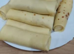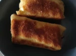 Teraz czas na składanie krokietów – na każdy placek naleśnikowy nałóż farsz i równomiernie go rozsmaruj. Naleśniki złóż w kopertę, boki zwiń w rulon.