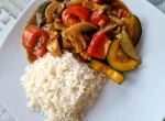 Całość zamieszaj, podawaj prosto z patelni w towarzystwie kolorowych warzyw i ryżu.