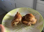 Tak przygotowanym nadzieniem nafaszeruj dokładnie wnętrze kurczaka, a następnie zepnij dokładnie wykałaczkami, tak by farsz był szczelnie zamknięty.