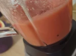 Kawałki arbuza zblenduj na jednolitą masę, dodaj sok z cytryny, miód i listki mięty, całość ponownie zblenduj.