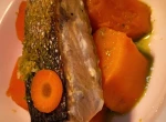 Grillowany łosoś otoczony warzywami :starta marchewka,kalafior,karbowane sałaty,odrobina kapusty kiszonej i pomidorki koktajlowe z dressingiem tahini