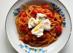 Makaron z burratą i pieczonymi pomidorkami według Mateusza Gesslera