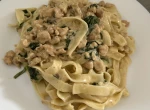 Makaron z kurczakiem i szpinakiem w sosie śmietanowym