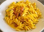 Makaron z serem i sosem dyniowo-pigwowym