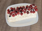 Kiedy uzyskasz sztywną pianę dodaj mąkę i dokładnie wymieszaj.Wyłóż ją na papier do pieczenia w wymiarach zbliżonych do upieczonego wcześniej ciasta. Bezę piecz w 140 stopniach przez ok. 60 min.