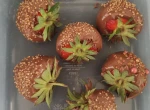 Ostrożnie zanurz dolną część maliny (2/3 każdej maliny) w czekoladzie, pozostawiając odsłoniętą górę owoców.