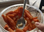 Mrożone marchewki ugotuj w niewielkiej ilości osolonej i osłodzonej wody. Dodaj osączony groszek.