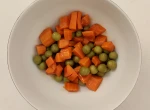 Gotowaną marchewkę z groszkiem dopraw do smaku solą i pieprzem.