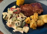 - Grill rozgrzej do wysokiej temperatury. Plastry karkówki ułóż bezpośrednio na ruszcie lub tacce i grilluj przez ok. 15 minut z każdej strony. Mięso powinno być rumiane i kruche (najlepiej grillować je pod przykryciem, aby nie wysychało i pozostawało kruche i soczyste).