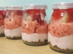 Rozmroź truskawki. Mleko jaglane - ugotuj kaszę jaglaną (odłóż 3 łyżki), przestudź, dodaj dwie szklanki przegotowanej ostudzonej wody, daktyle, szczyptę soli, ziarenka wanilii. Zblenduj i odciśnij płyn przez chustę serowarską, gazę lub drobne sito. Odlej pół szklanki mleka jaglanego (a pozostałą część podgrzej) i dodaj żółtka i mąkę ryżową, całość dobrze rozprowadź. Dodaj do podgrzanego mleka, dalej ogrzewaj, dokładnie mieszając aż masa zgęstnieje. Do masy dodaj 3 łyżki odłożonej wcześniej kaszy. Truskawki zblenduj razem z cukrem. Masę przełóż do rękawa cukierniczego z dużą karbowaną tylką, wyciśnij do kielichów lub pucharków, zalej musem truskawkowym, opcjonalnie przyozdób listkami mięty, posypką o smaku mango. Smacznego! :)