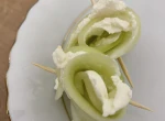 Pomidory kroimy na małe kawałeczki. Orzechy, szczypiorek i koperek drobno siekamy. Składniki mieszamy z serem, dodajemy olej ze słoika z suszonych pomidorów. Doprawiamy sola i pieprzem. Ogórka kroimy cieniutko wzdłuż. Pierwszą część odkładamy, bierzemy te plasterki od środka. Na każdy plasterek ogórka nakładamy niewielką ilość farszu i zawijamy w roladkę.