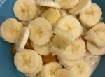 Banana pokrój w plasterki. Kiwi podziel na ćwiartki i następnie pokrój w plasterki.