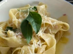 8. Na wierzch gotowego makaronu podajemy chipsy z boczku oraz posypujemy pozostałym parmezanem.