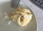 Zamknij pasztecik, zamykając dwa rogi, całość posmaruj rozmąconym jajkiem.