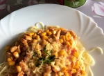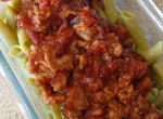 W rondlu z grubym dnem połączyć masło, oliwę, śmietankę, wino, mleko, curry, czosnek, listki laurowe i sól. Doprowadzić do wrzenia, po czym zmniejszyć ogień i dusić bez przykrycia 15-20 minut, od czasu do czasu mieszając, aż sos zgęstnieje. Wymieszać migdały i kawałki kurczaka. Doprawić do smaku i dusić 2-3 minuty, aż składniki dobrze się podgrzeją. Podczas gdy sos się powoli dusi, w dużej ilości osolonej wody ugotować makaron al dente. Odcedzić i przełożyć do ciepłej miski. Wymieszać z połową sosu i drugą połowę nałożyć na wierzch.