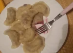 W garnku zagotuj wodę i partiami wkładaj pierogi. Gotuj na niewielkiej mocy płyty grzewczej przez około 3 minuty od wypłynięcia pierogów.
