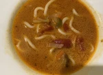 Wrzuć wszystkie składniki od czosnku do cebuli włącznie (oprócz soku z limonki) do pojemnika blendera i zmiksuj na gładką pastę. Rozgrzej średni rondel na średnim ogniu, włóż pastę i smaż przez kilka minut, aż poczujesz jej intensywny zapach. Wlej bulion i mleko kokosowe i doprowadź do wrzenia, po czym zmniejsz ogień i gotuj przez około 10 minut. W międzyczasie ugotuj makaron zgodnie ze wskazówkami na opakowaniu, odcedź i rozłóż na talerze. Dopraw zupę do smaku sokiem z limonki, cukrem i sosem rybnym, wlej do talerzy i podawaj posypaną świeżą kolendrą, chili i dymką.