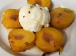 Tak upieczone brzoskwinie podawaj jeszcze ciepłe w towarzystwie odrobiny słonego koziego sera, posypane orzechami i siekanym świeżym tymiankiem z dodatkiem sosu mohito.